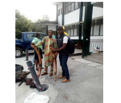 Through investigations and key informants, FReECo was able to get information about a group of local poachers in the Mount Cameroon National Park, South West Region of Cameroon that were specialised in the trade of elephant tusk (ivory) and other endangered species. We were able to provide intelligence to the Ministry of Forestry and Wildlife (MINFOF), and the Ecoguards agents succeeded to intercept a huge traffic of ivory. In the Deng-Deng National Park where we work closely with like-minded local guides, species that were killed and prepared for bushmeat marketing was also intercepted. These action have served as an eye opener to other poachers and dealers in the illegal wildlife trade and no doubt, a contributing factor to the welfare and stabilization of elephants and other species population in the Mount Cameroon and Deng-Deng National Parks.